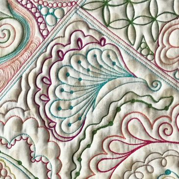 My favorite thread for Doodling is Aurifil 28wt in bright colors! Be sure to check my website for A Quilter's Doodles 28wt 5 pack thread set. Aurifil 50wt is perfect for the bobbin. No 28wt? 40wt or 50wt will work just fine.